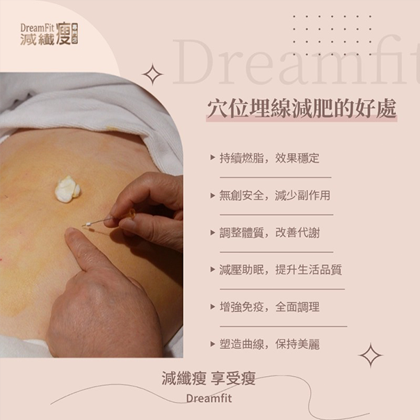 什麼是穴位埋線? 穴位埋線是一種結合中醫針灸理論和現代醫學技術的療法,通過將可吸收線材埋入特定穴位,促進氣血循環,調節身體機能,達到減肥、塑形和緩解疼痛的效果。相比傳統針灸,穴位埋線提供持久刺激,增強自愈能力,所用生物材料安全可吸收,治療過程相對安全舒適。隨著臨床研究和患者反饋的增多,穴位埋線在現代養生和美容領域逐漸受到認可,滿足個性化健康需求,成為有效的健康改善途徑。 穴位埋線的原理 持續性刺激 通過將可吸收線材埋入穴位,實現長期的物理刺激,激活經絡的氣血循環,幫助改善慢性問題,增強自我修復和免疫力。 調節內分泌與自律神經 刺激特定穴位調節內分泌系統和神經系統,對失眠、壓力、月經不調等內分泌相關問題有良好療效,幫助身心放鬆和平衡。 加速代謝與減少食慾 埋線在減肥穴位上可以抑制食慾、加快脂肪代謝,達到減重、塑形的效果,並同時改善膚質和肌膚緊緻度。 穴位埋線的優點 持久效果 一次埋線能提供長達幾週的持續刺激,減少了頻繁就診的需求。 安全性高 所用的材料可被人體吸收,不會留存異物,副作用較少。 無需藥物依賴 通過自身經絡調節,減少對外用藥物的依賴。 效果全面 不僅可用於外在問題,還能內調身體機能,達到身心調理的效果。 免費諮詢 我們會盡快回覆你,請耐心等候。 请在浏览器中启用JavaScript来完成此表单。请在浏览器中启用JavaScript来完成此表单。姓名 * 預約日期及時間 姓名 預約療程項目 電話 *預約療程項目免費中醫問診中醫埋線減肥療程針灸燃脂療程經絡疏通療程緊脂塑形療程預約日期及時間 *提交
